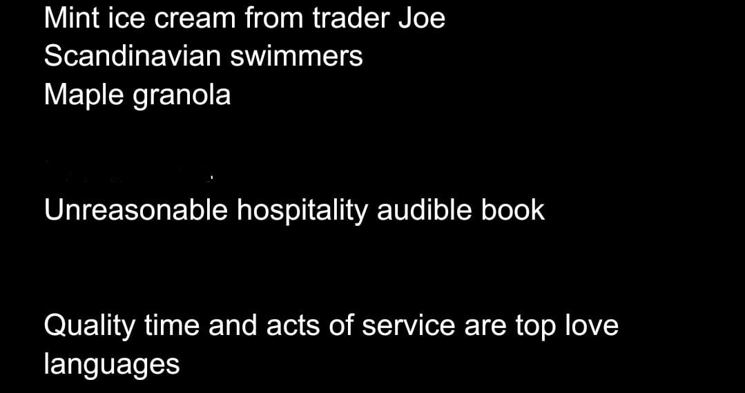 I have a Google doc labeled: Unreasonable hospitality for friends. (I could make a notion template. Let me know if you’d find that useful)