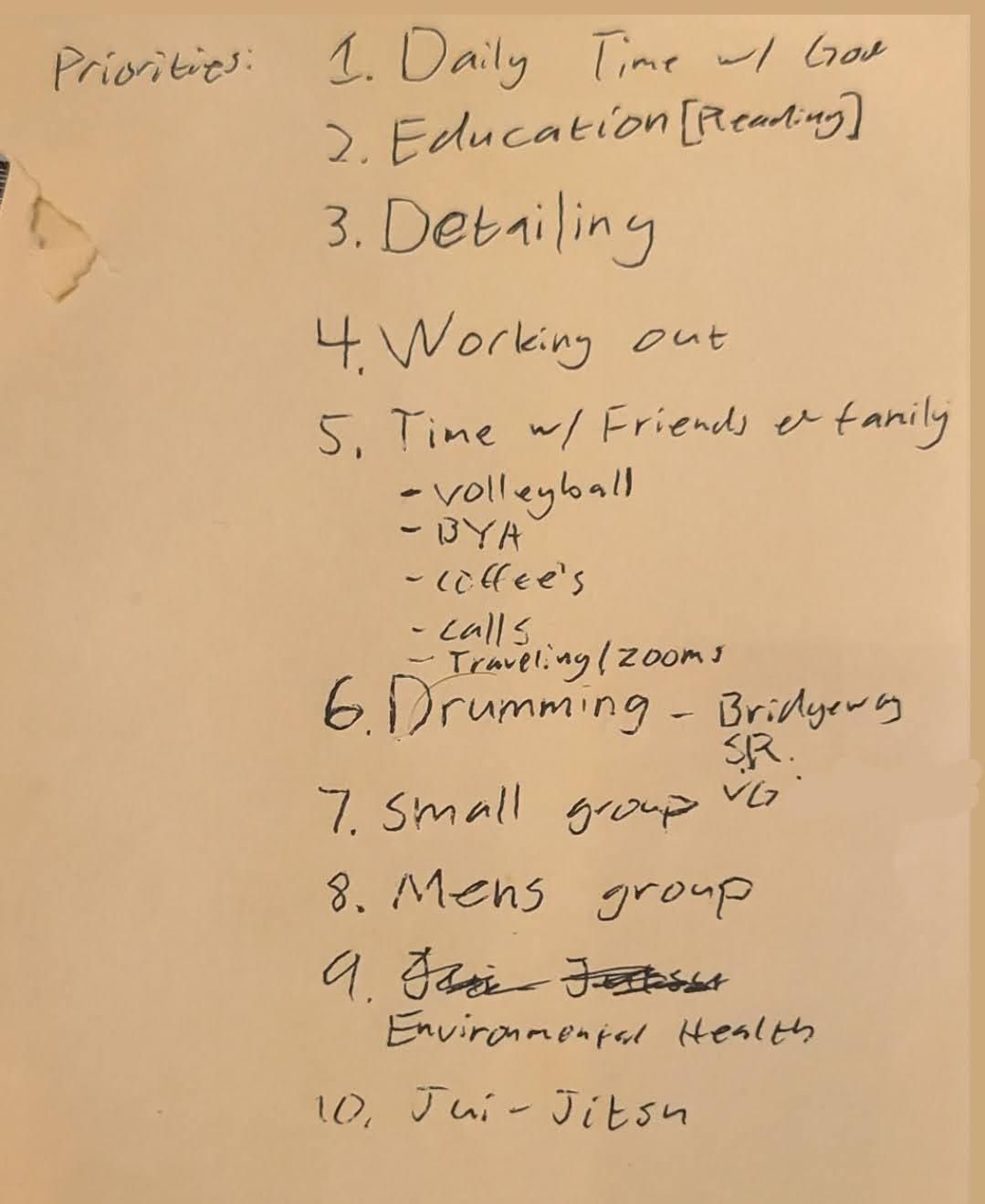 I wrote out what my current priorities were based on my actions and how I spent my time. (they were massively different)