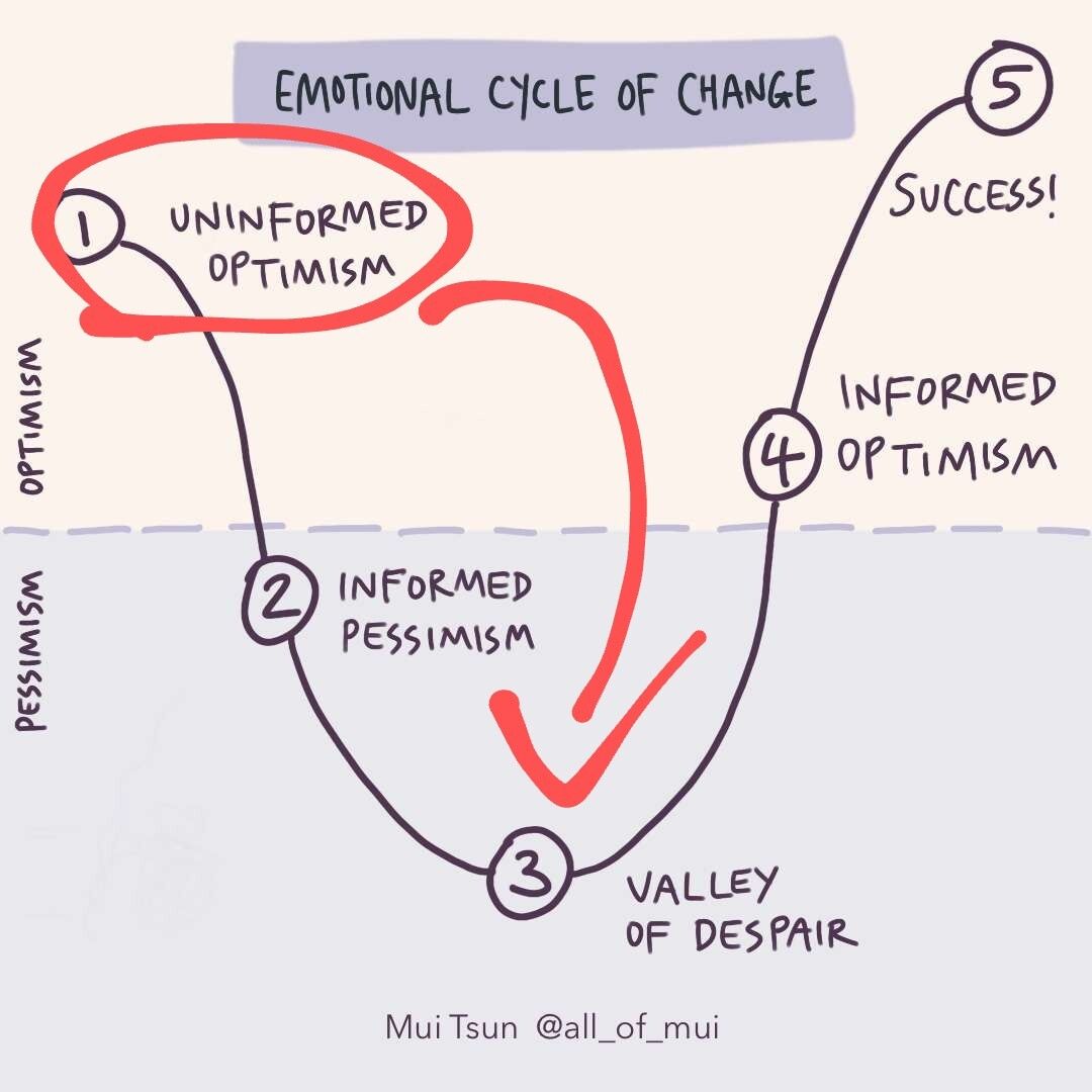 But most things go through this cycle: uninformed optimism, informed pessimism, valley of despair, informed optimism, success.